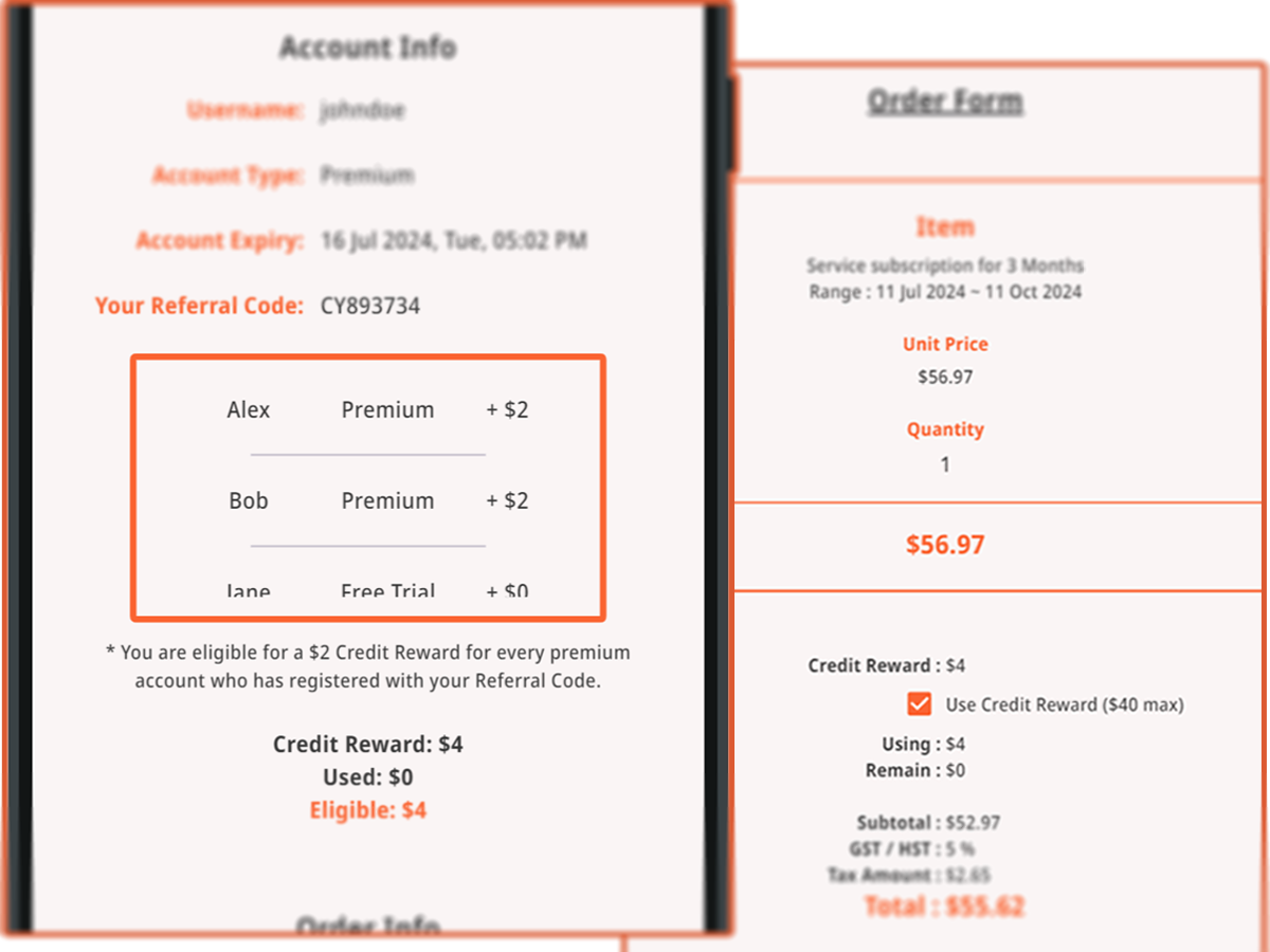 Upon upgrading to a premium user through any in-app subscription plan, you'll receive a unique referral code. Spread the word about QueueR by sharing your referral code with other users before they register. Earn a $2 CAD credit reward for each referred user who also becomes a premium user like you. Redeem your credit reward towards your next purchase and continue enjoying premium benefits.