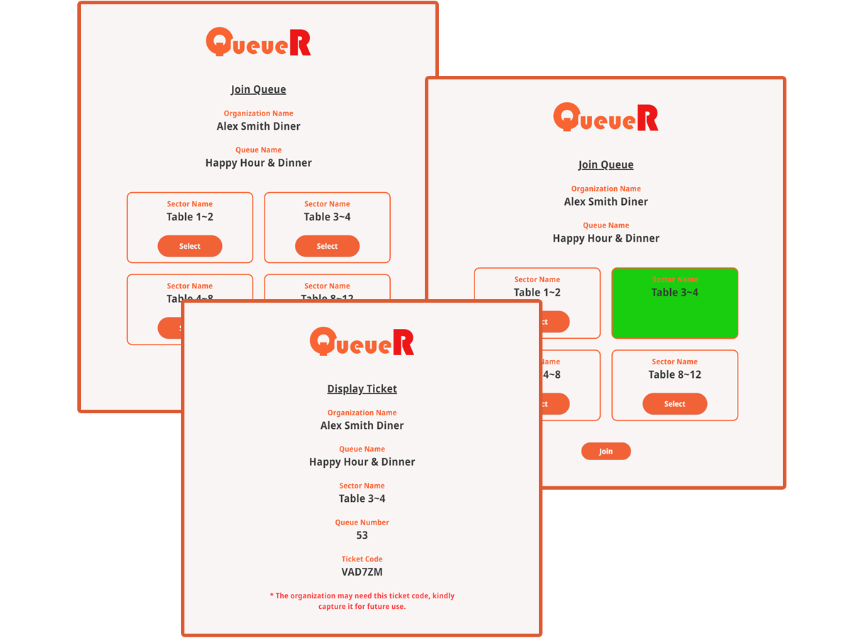 Customize your queuing experience by selecting between a Single Sector or Multi-Sector queue option. Effortlessly configure queues using our intuitive QueueR Admin Panel, while using QueueR-Tab to showcase queues and display QR code for hassle-free customer access.